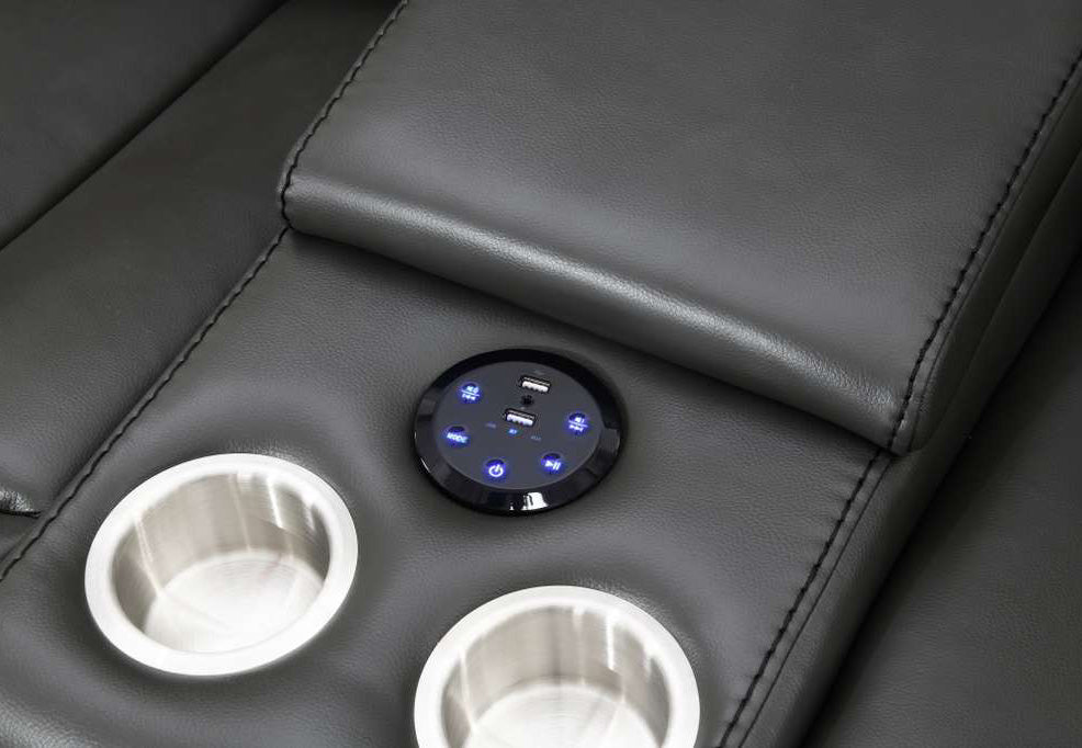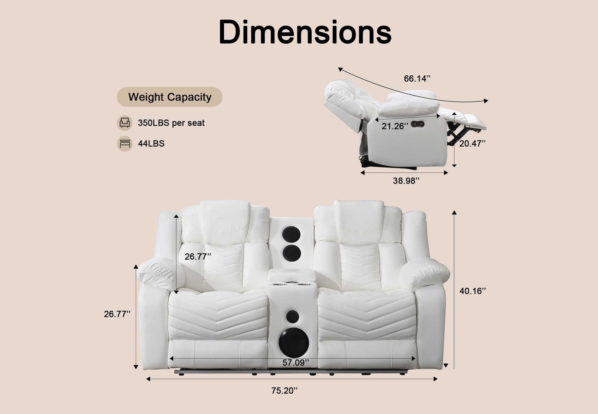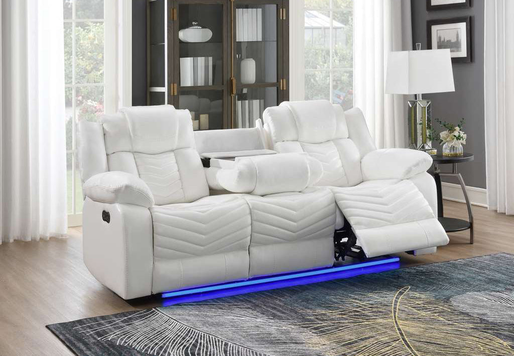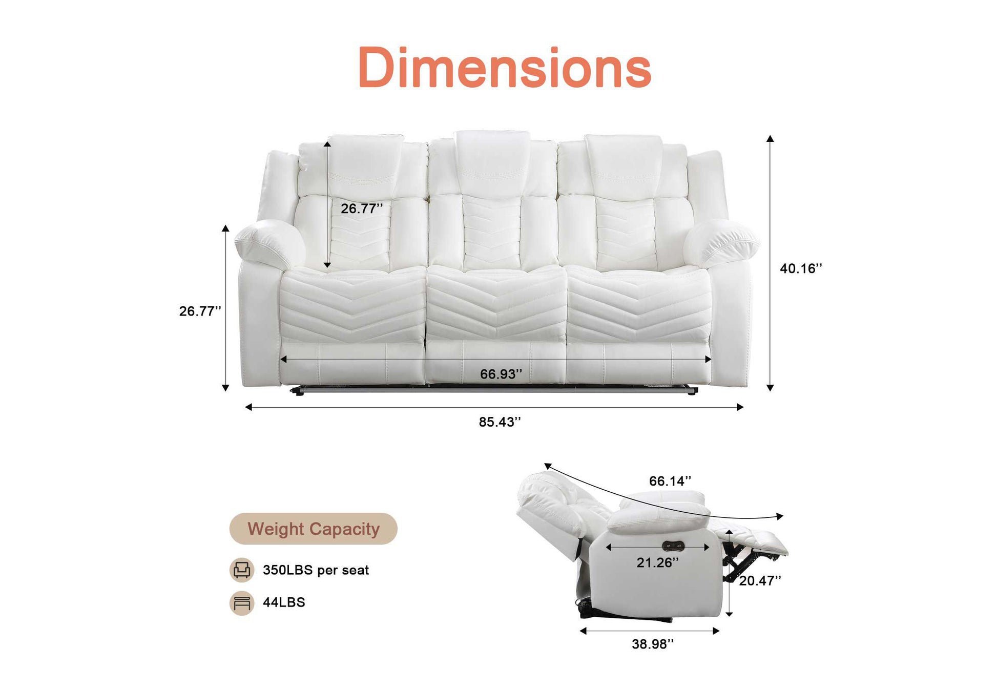 Modern 3-Piece Reclining Sofa Set. crafted in premium black leather with plush cushioning, LED base lighting, and built-in cup holders for a luxurious home-theater experience.